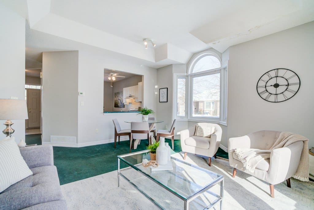 Welcome home to 1 Greentrail Drive in the highly sought-after adult lifestyle community of Twenty Place. This clean, move-in ready end-unit bungalow has been lovingly maintained by its original owner for over 25 years, reflecting true pride of ownership. Offering one bedroom and one full bathroom, the home features a bright white eat-in kitchen with ample cabinetry, included appliances, and a welcoming layout ideal for easy main-floor living. The spacious living and dining area provides a comfortable place to relax or entertain, while main-floor laundry and inside access from the garage add everyday convenience.The unfinished basement offers excellent storage space or the opportunity to finish and customize to your needs. With a practical floor plan and well-cared-for condition throughout, this home is perfect for those seeking low-maintenance living in a friendly, established community.Residents of Twenty Place enjoy access to an outstanding clubhouse with an indoor pool, sauna, whirlpool, fitness centre, party room, library, games and craft rooms, tennis/pickleball courts, putting green, shuffleboard, and more. Book your showing today!